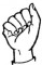 На ћирилици написано ВУКОСЛАВ ПАРТОН састоји се из 14 слова [?]. Исписано ћириличном једноручном азбуком за глувонеме: